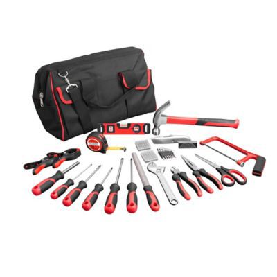 Sac à outils 46 cm. 20 embouts, 1 porte embout magnétique, 6 tournevis (sl3.5 x 75mm, sl4 x 100mm, sl5.5 x 150mm, ph0 x 75mm, ph1 x 100mm and ph2 x 125mm), 1 couteau pliant verrouillable, 1 boîte de 5 lames, 1 clé à molette 8, pince universelle 8, pince à bec. Malette à outils magnusson : Sac à outils magnusson neuf peu servi car pas utilité. A 30€ je l'ai prise et peut la comparer objecti.